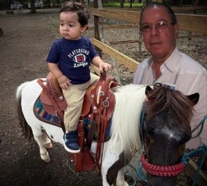 Disfrute Arnulfo en la foto, con Mauro, el nietecito que ya monta en un Pony.