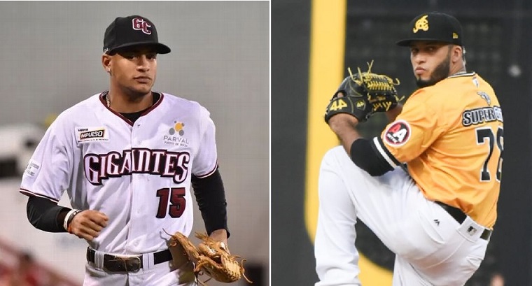 José Sirí y Marcos Diplán, quienes fueron electos jugadores más valiosos de las series semifinales en el Pelotero Estrella de la Semana.